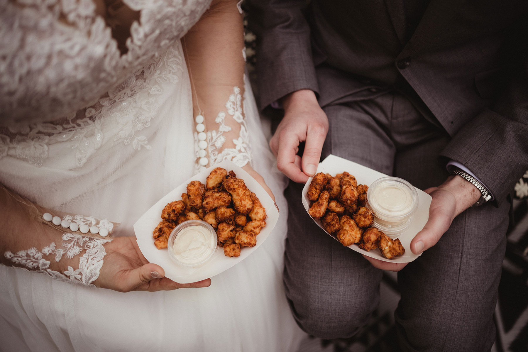 If you’re serving alcohol at your reception, late-night snacks serve a practical purpose beyond just hunger. Food helps guests pace themselves and absorb alcohol, which can prevent overindulgence and make for a safer, more enjoyable evening. Many couples cite guest safety as their primary reason for including late-night options.