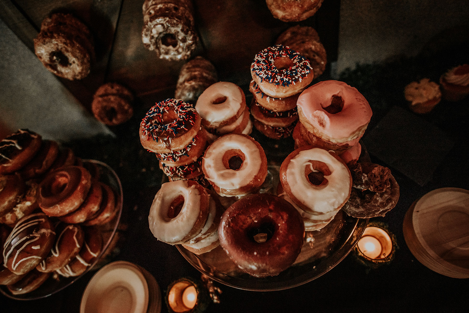 - Donut wall or donut bar: Highly photogenic, variety of flavors